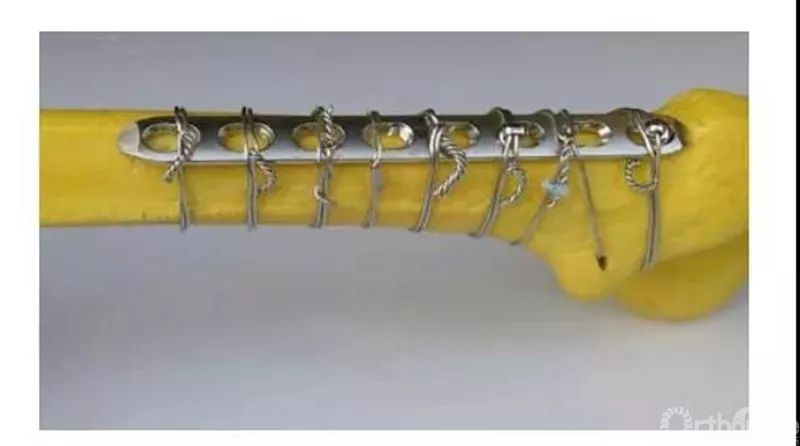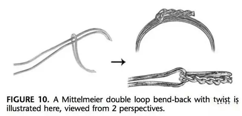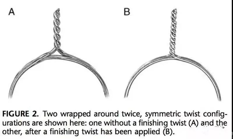 The most commonly used and basic wire binding method. Tie around the bone one or two times, clamp the wire about 2-3cm from the bone surface, gently lift and twist at a constant speed in one direction (generally clockwise), paying attention to the symmetry of the force during each twist. The steel wire is symmetrically twisted, and the bone surface is twisted and fastened by pressure. Leave about 1.5cm, cut at least three torsion points, and bend the stump to fit the bone surface.